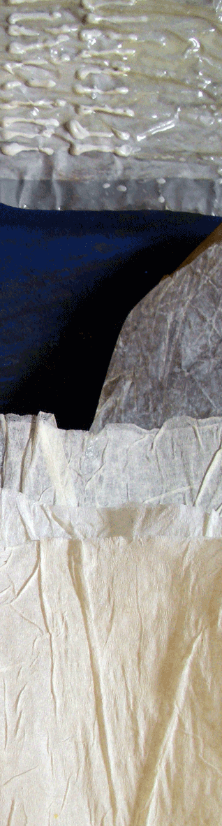 Sie arbeitet mit allem, was ihr unter die Hände kommt: ordinäres Zeichenpapier, Seidenpapier, Packpapier, gern gewachstes Papier, das eine große Rolle spielt. Aus Papiertüten baut sie ganze Installationen – Tüten faszinieren sie, denn da ist „etwas drin, was man von außen nicht sieht“. Die Paarung des „Drinnen“, das man von außen nicht sieht, aber vielleicht ahnt, mit dem Außen, das das Drinnen verdeckt und versteckt oder seinerseits vielleicht ahnen lässt, das wurde ihr zum faszinierenden Thema. Mit ihren Mänteln ist sie hier einen ganz erstaunlichen Erfahrungsweg gegangen.